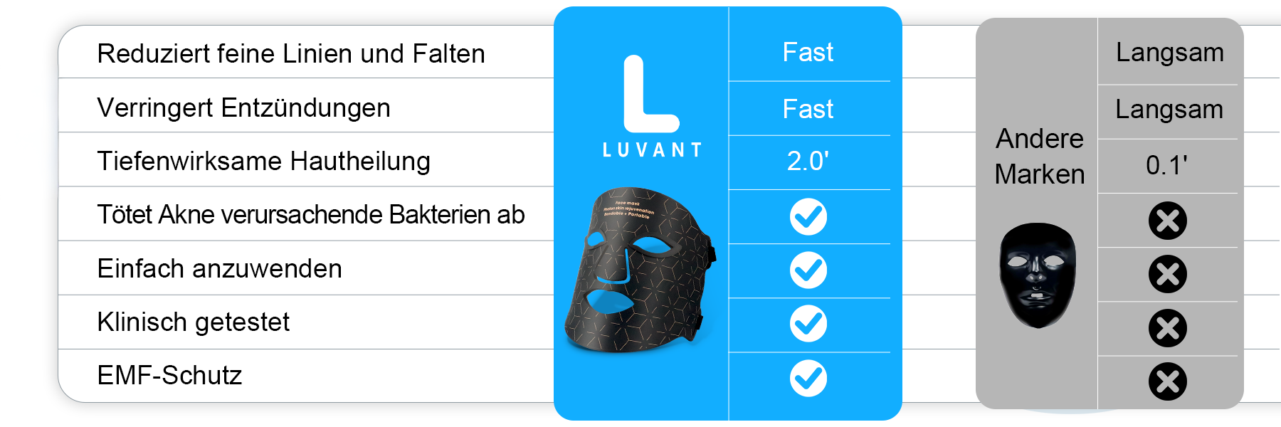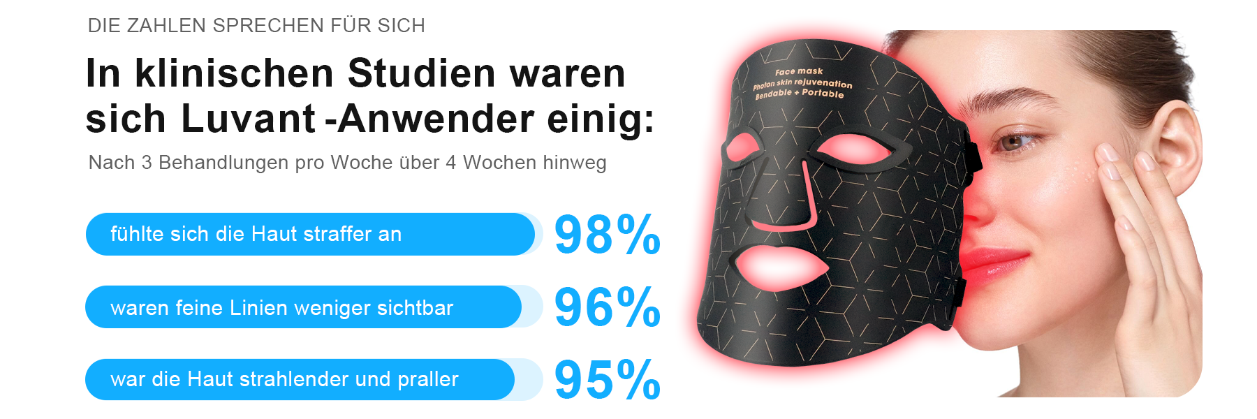 Deshalb ist jede Funktion der Luvant LED-Maske – vom intelligenten, freihändigen Design über die gezielte Phototherapie bis hin zur bequemen Silikonpassform – genau auf Sie zugeschnitten. Sie ist nicht nur ein Schönheitswerkzeug, sondern Ihr persönlicher „Glow-Restorer”, der Ihnen hilft, Ihre Haut mühelos zu verwandeln und Ihre Ausstrahlung zurückzugewinnen. Entscheiden Sie sich für die Luvant LED-Maske, um jeden Moment der Selbstpflege mühelos zu genießen.
